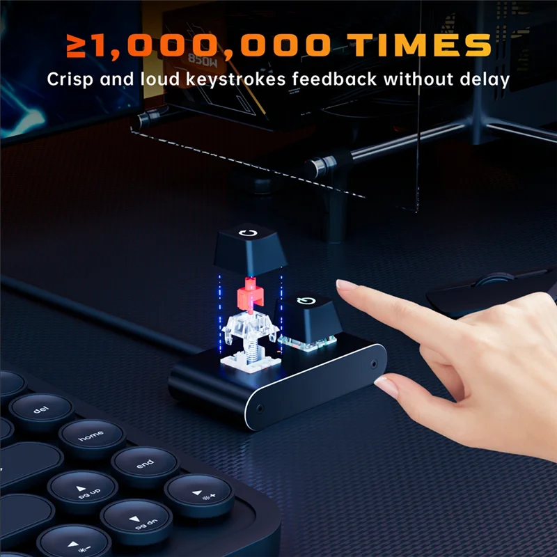 3. The frequently used power button is placed on the right side of the product, and the less frequently used restart button is placed on the left. The power indicator light is reflected in the colorful self-circulating light effect under the keycap (LED chip control), and the hard disk indicator light is viewed through the small hole in the middle of the product;